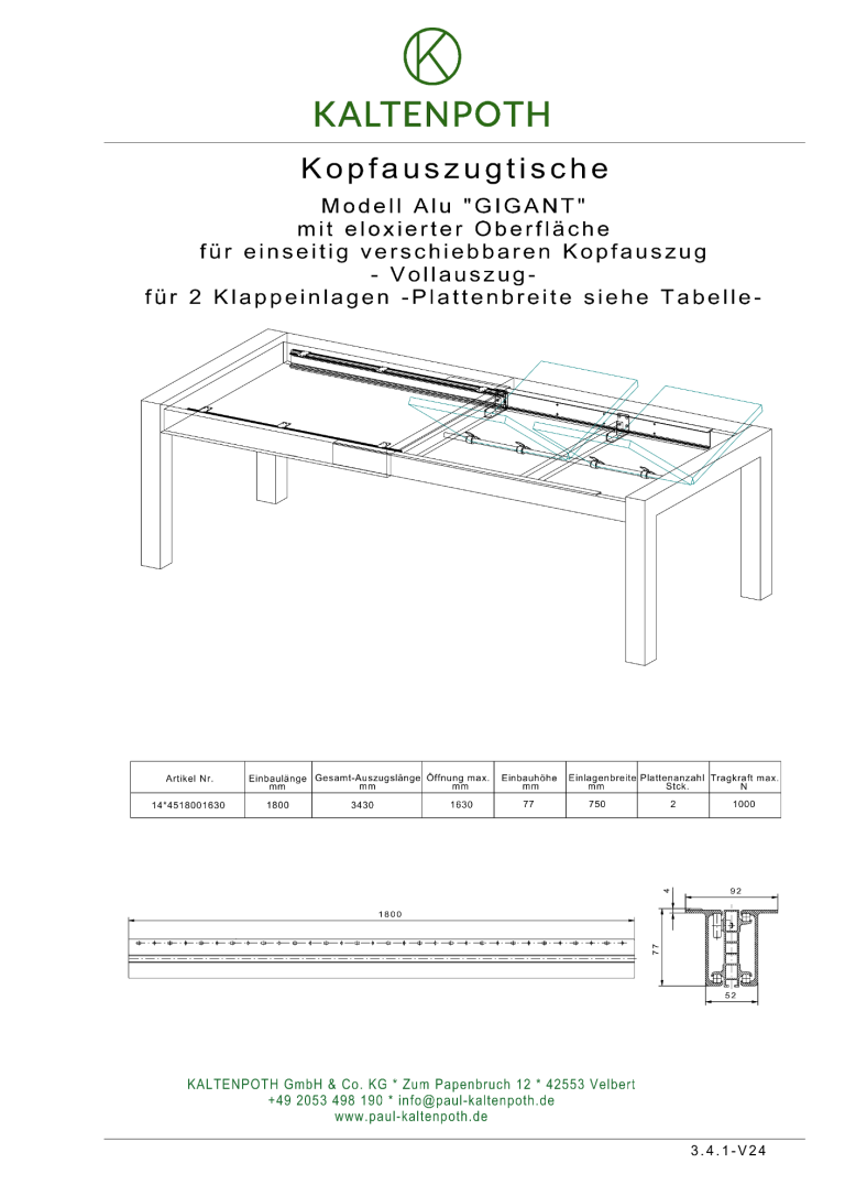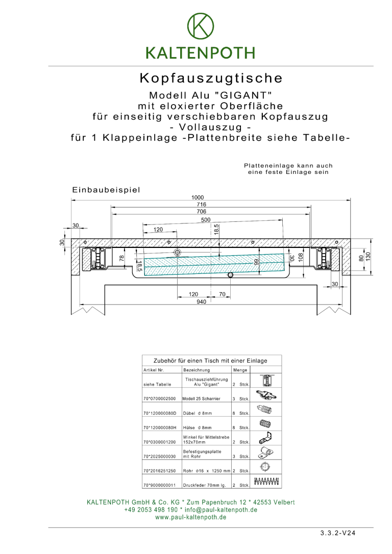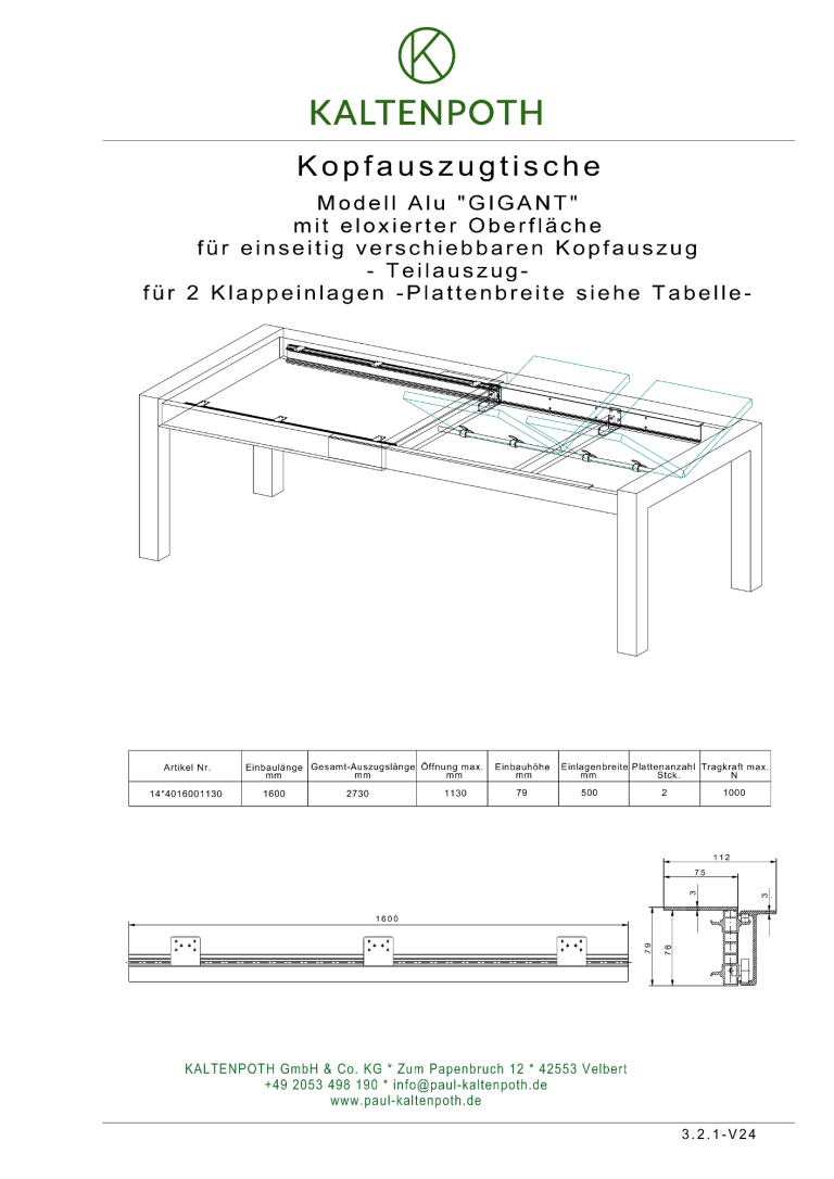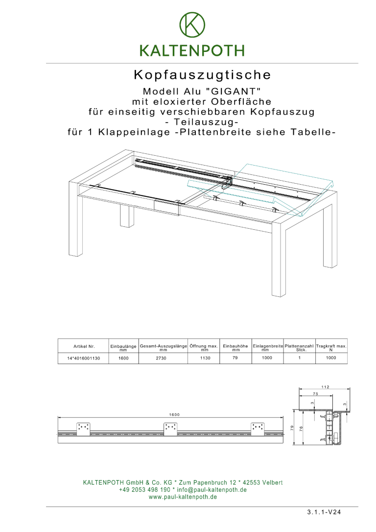 Modell Alu "GIGANT" mit eloxierter Oberfläche für einseitig verschiebbaren Kopfauszug