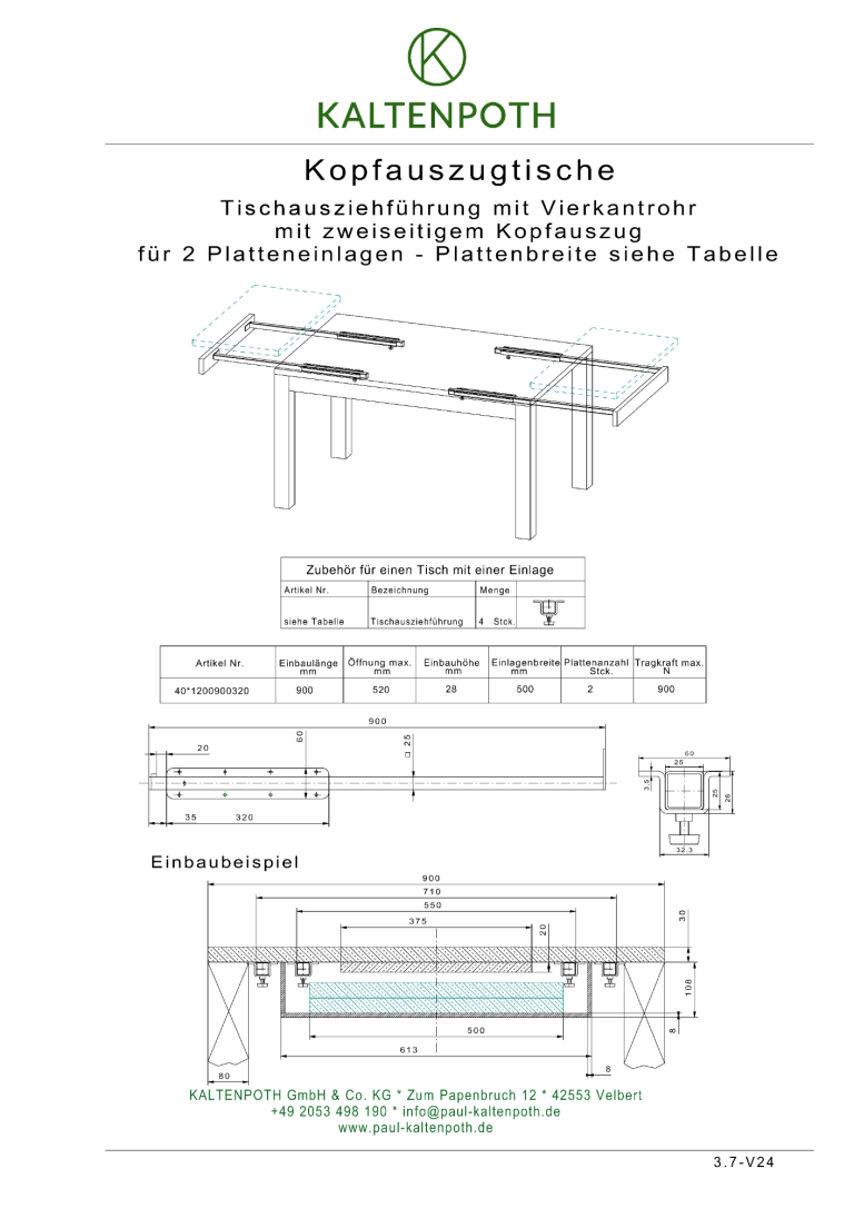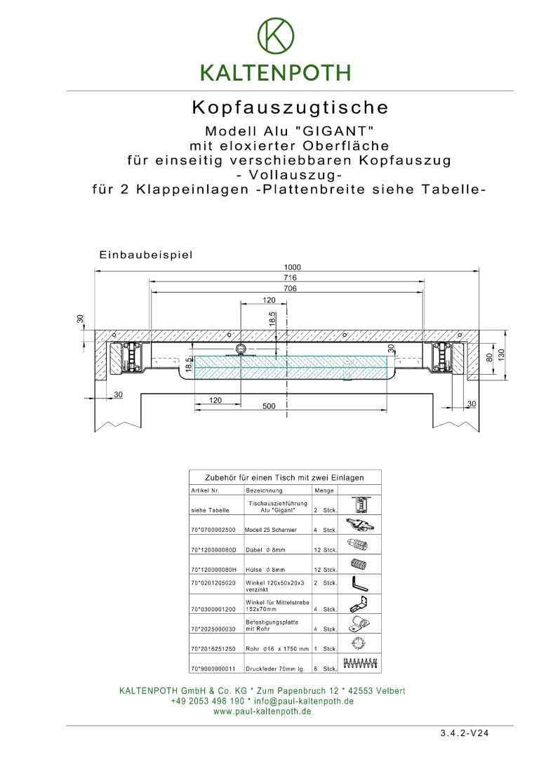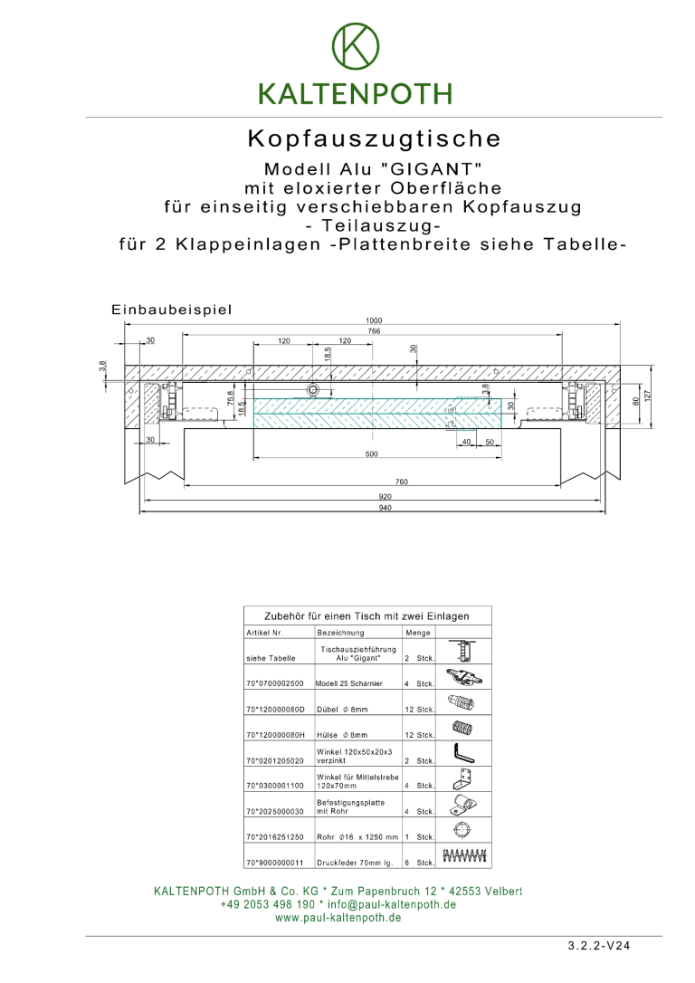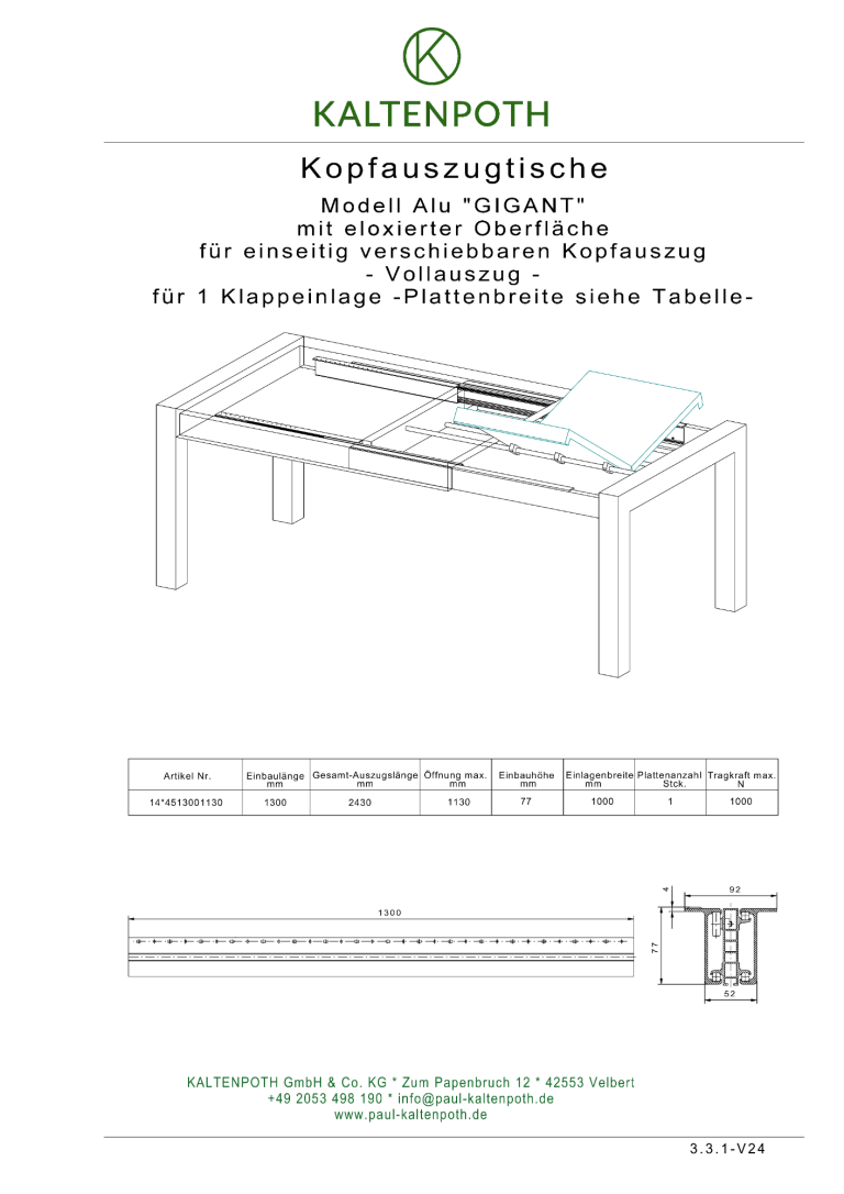 Modell Alu "GIGANT" mit eloxierter Oberfläche für einseitig verschiebbaren Kopfauszug