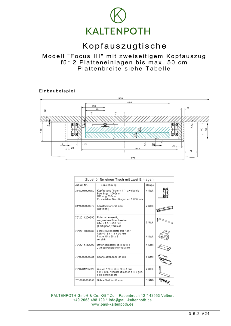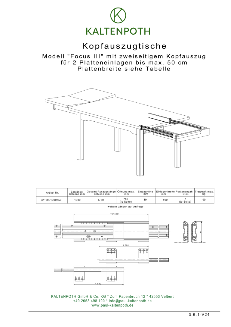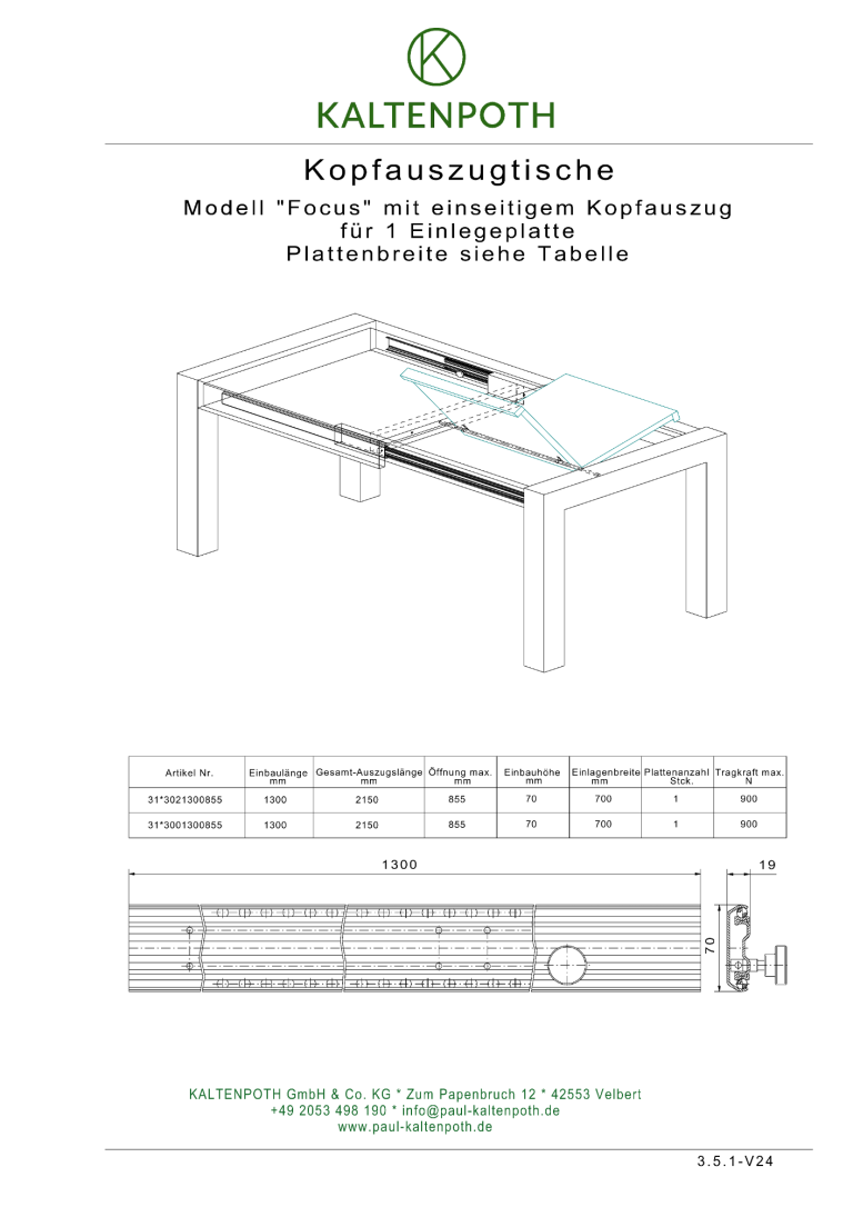 Modell "Focus III" mit zweiseitigem Kopfauszug